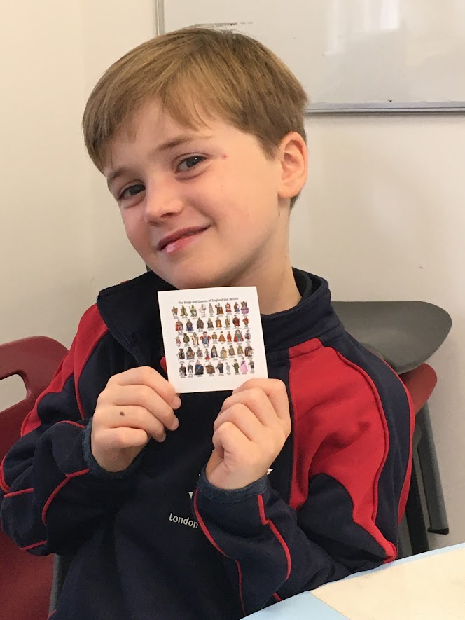KS2 has been challenged to learn all the kings and queens of England / UK in order. Lots of them have already managed it and collected their little prizes of an appropriate sticker. We’ve discussed at length the exclusion of Jane and Matilda from many lists. The children have been reordering some monarchs who keep mixing themselves up! Yellow squares have been stuck to the monarch who children think is most significant. William the Conqueror has collected the most so far as the leader of the last successful invasion and Queen Elizabeth II has collected the most orange squares as children decide who the monarch is that they respect the most.