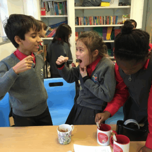 They used a war time recipe to cook their own ration cake in a mug. The vast majority of children thought it was delicious and ate the lot!