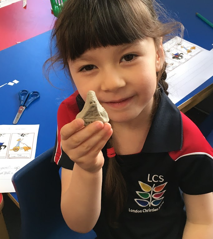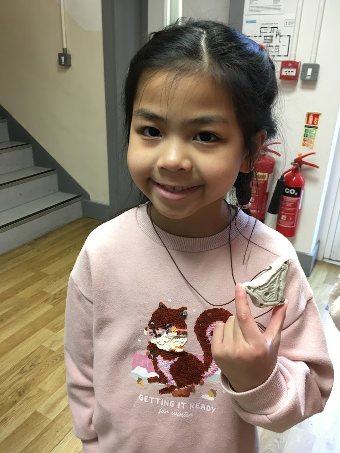 One of the Viking gods was called Thor and he had a magical hammer. People used to wear a Thor’s hammer pendant, so we made some of our own. It was also interesting to find out that more and more people stopped wearing Thor’s hammers and wore crosses instead.